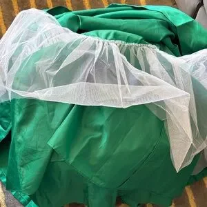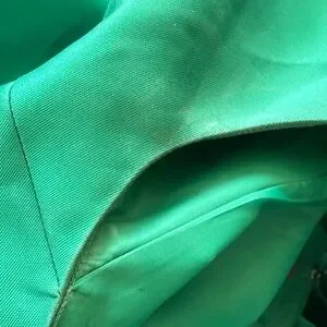 Has wear along armpits and neckline. Some blemished by zipper and on the dress. Just needs some tending too.