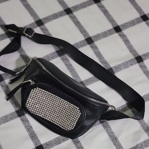 Madden NYC Black Rhinestone Accent Waist Bag