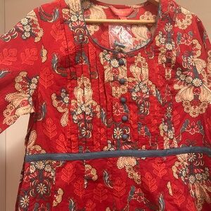 April Cornell Red Floral Pintuck Dress with Blue Trim “Firenze Dress”