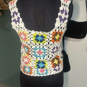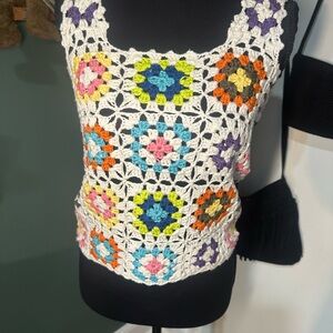 Freshman 1985 Crochet Tank Top Granny Square Boho Festival Knit XS