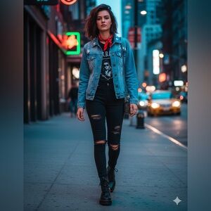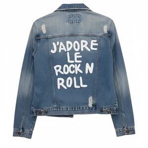 The Ultimate Cool-Girl Staple: Make a statement with this edgy Forever 21 denim jacket. Featuring a bold "J'ADORE LE ROCK N ROLL" hand-painted style graphic on the back, this jacket is the perfect blend of Parisian chic and rockstar grit.