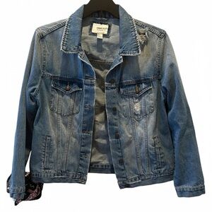 Forever 21 J'adore Le Rock N Roll Denim Jacket Large Distressed Blue