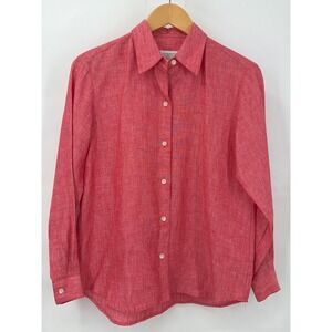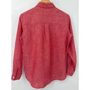 Liz Claiborne Lizsport PP Petite Red Linen Button Down Shirt Career Minimalist