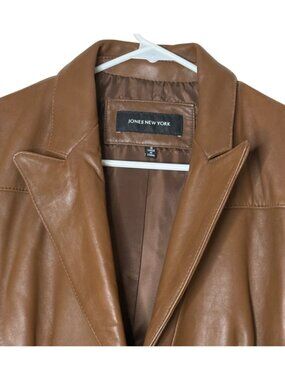 Classic Jones New York genuine leather blazer in a rich brown tone with a flattering tailored fit. A versatile wardrobe staple with structured seams and a polished look.