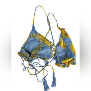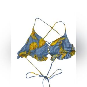 Molly Green Blue Yellow Tropical Floral Ruffle Triangle Top 100% Rayon Women's M