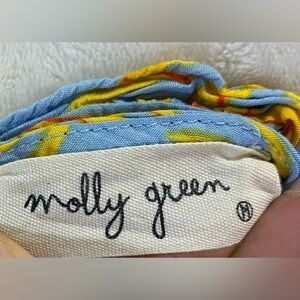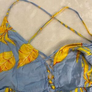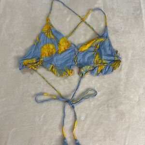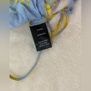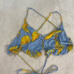 Molly Green Blue Yellow Tropical Floral Ruffle Triangle Top 100% Rayon Women's Size Medium.