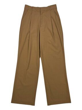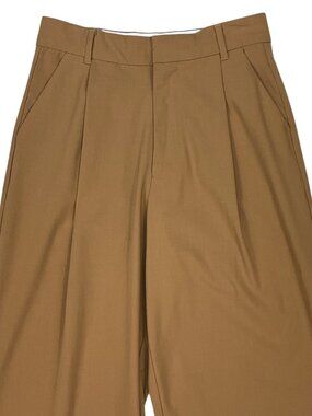 Zara Pleated Front Wide Leg Trouser Pants S Tan High Rise
