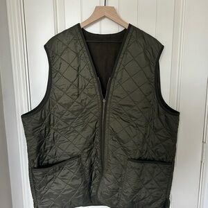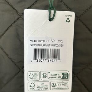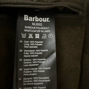 Brand new with tags. 2XL Barbour Polarquilt vest/waistcoat. Also zips in as a liner with Barbour jackets. Quilted, fleece lined, with big pockets, and very well made.