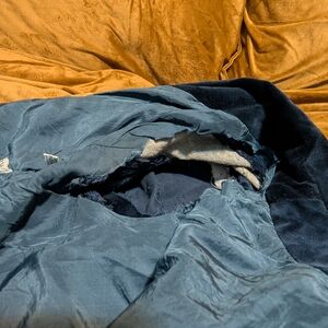 Fits snug in arms and so the lining, esp around underarms and wrists was cut out. Not noticeable when wearing.