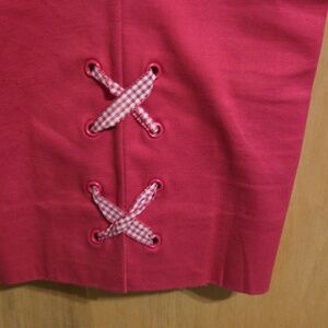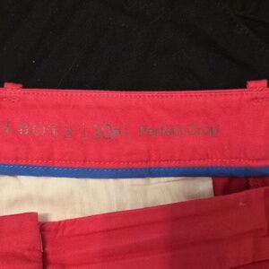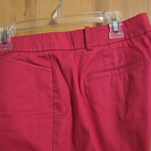 pair of size 10 petite Talbots perfect crop pant in hot pink color with cute checked rivets at the bottom. the waist measurement is 35 in with an inseam of 21 in