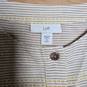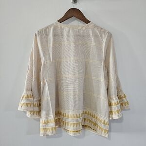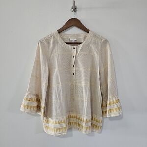 J.JILL Organic Cotton Yellow Peasant Striped Aztec Bell Sleeve Pullover Top MP