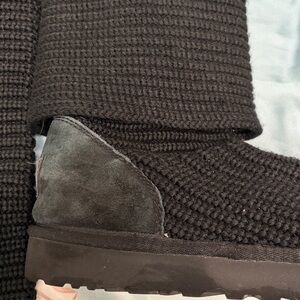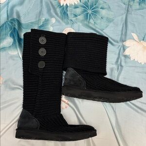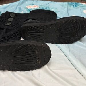 UGG Black Knit Button Mid-Calf Heeled Boots