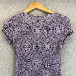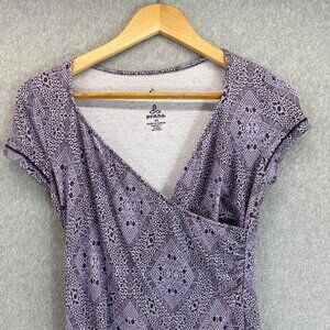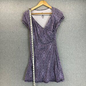 Prana Womens Size XS Purple Dress Patterned Faux Wrap V-Neck Breathe Outdoor