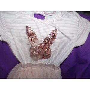 Btween pink stripe top with sequin bunny applique tutu skirt size 5