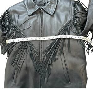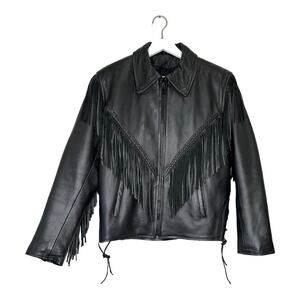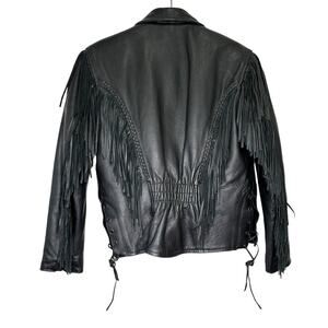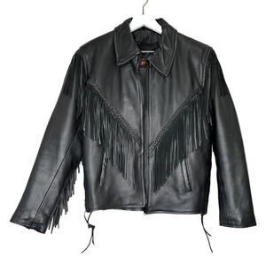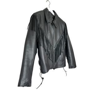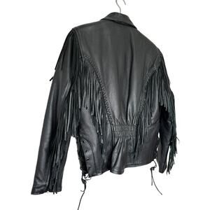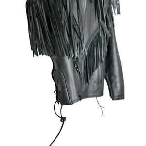 Antelope Creek Black Leather Fringe Motorcycle Jacket Size Medium