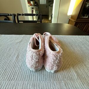 Pink fuzzy Vans with matching laces. Plush upper for a cozy look. Classic lace-up silhouette. Casual and playful style. Shoes have never been worn, brand new. No box.