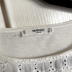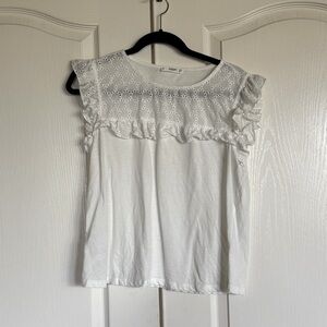 Mango white Schiffli embroidered eyelet lace cap sleeve top size medium