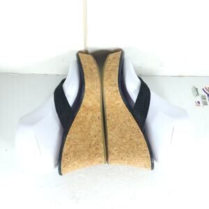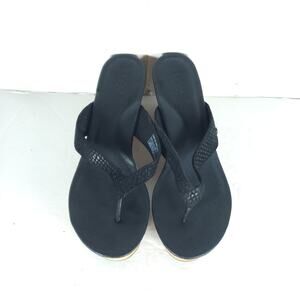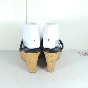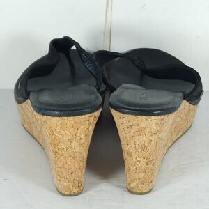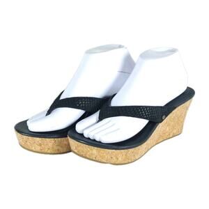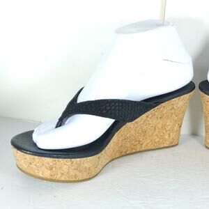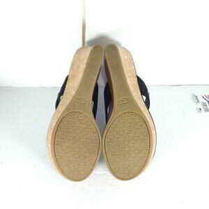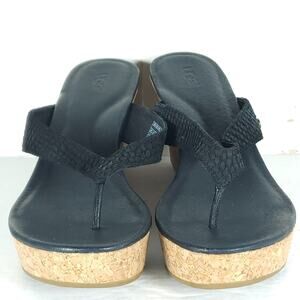 UGG Women's Natassia US8 Black Leather SlipOn Cork Wedge Platform Thong Sandals
