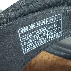 UGG Women's Natassia US8 Black Leather SlipOn Cork Wedge Platform Thong Sandals .