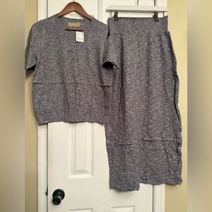 New Free People gray skirt sweater shirt set large $198 boho dress Anthropologie
