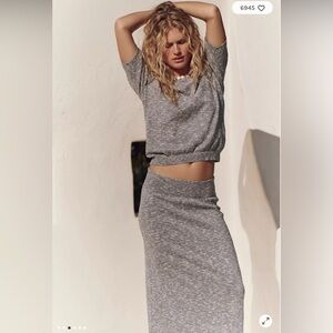 Free People gray skirt sweater shirt set large $198.00 boho bohemian dress Anthropologie New with tags! Never worn! Only removed from package to take pics and measure.