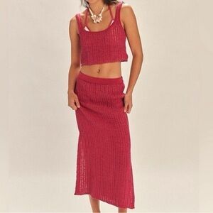 FP Beach Small Set Havana Sweater Set Free People in Love Potion Red Cotton Knit