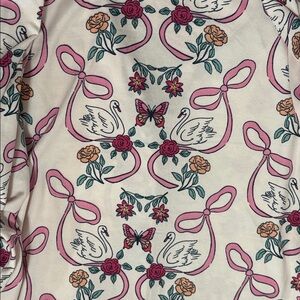Envogue Women’s XL Swan & Ribbon Pink White Pajama Set Super Soft - NWT