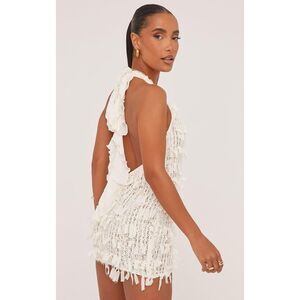 New EGO Extreme Plunge Mini Bodycon Dress In Cream Texture Size 8