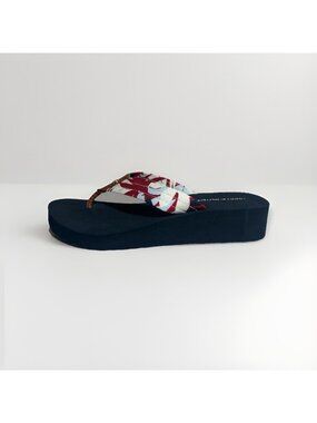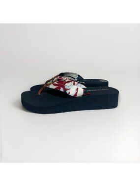 New Tommy Hilfiger Flip Flops Women’s 7 Navy Blue With Floral Print Wedge Heel