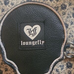 Gorgeous Loungefly sugar skull wristlet in excellent condition. Embroidered details. Wrist strap. Sturdy zipper pull. Black and cream in color. Wristlet measures 5.25x4.5x1.75 inches. Super cool!