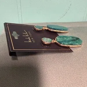 BNWT NICOLE MILLER FAUX MALACHITE MARBLED GOLD TONE DROP POST BACK EARRINGS