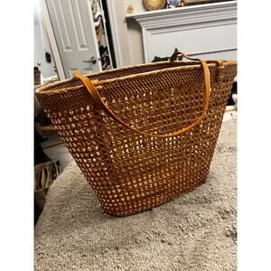 NWT Bembien Women's Brown Raffia Leather Trim Dual Shoulder Straps Tote Bag