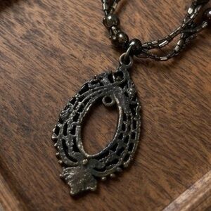 Artisan Beaded Statement Necklace Dark Pendant Boho Vintage