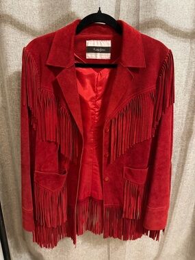 Neiman Marcus Red Suede Fringe Jacket