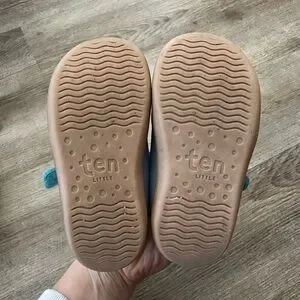 Soft blue kids sneakers with easy hook-and-loop strap and elastic laces for quick on and off. Flexible, wide toe box. Worn just a few times. Size 8 toddler OLD Ten Little sizing (they recently updated).