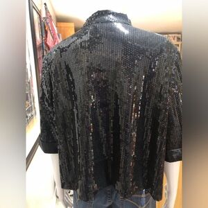 Black Sequin Draped Open-Front Jacket Vintage, EUC Jessica (Sears) Size 18