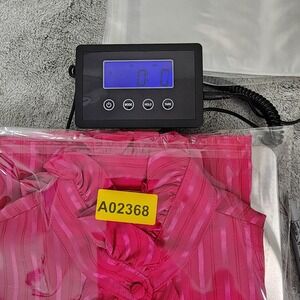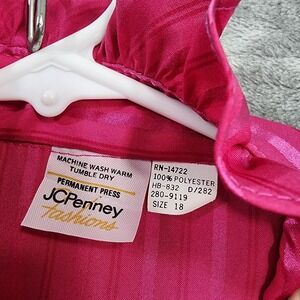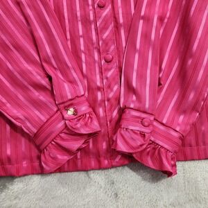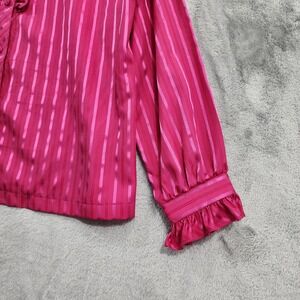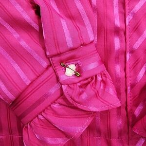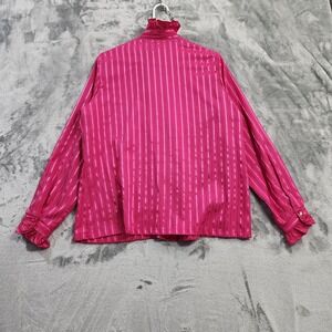 Vintage JCPenney Top Womens 18 Pink Striped Satin Ruffled High Neck Long Sleeves