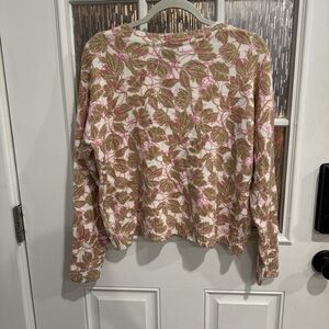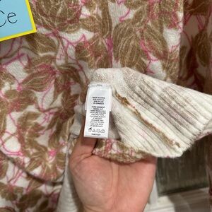 CeCe Women Medium V-Neck Sweater Soft Knit Beige Pink Leaf Pattern Pullover NWT