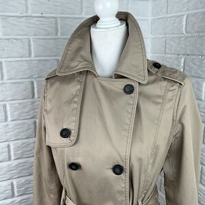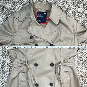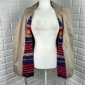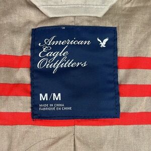 AMERICAN EAGLE OUTFITTERS TRENCH COAT TAN WITH STRIPES 100% Cotton Size Medium