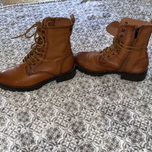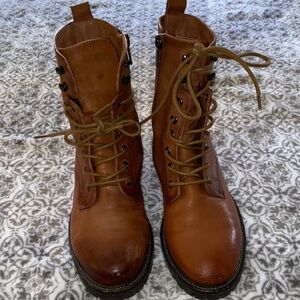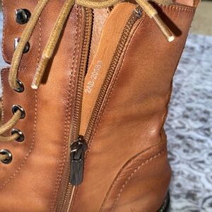 Classic chestnut brown lace-up ankle boots with a side zipper for easy on-and-off. Smooth leather, upper & sturdy rubber sole for dependable traction. Beautiful boot and super comfy! Perfect brown color!