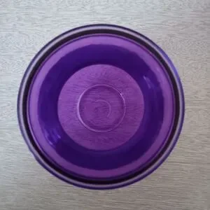 This curvy medium size transparent violet purple glass vase would add a vibrant touch to any floral arrangement. In excellent pre-owned condition.