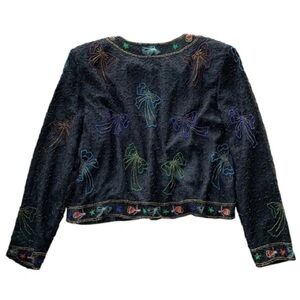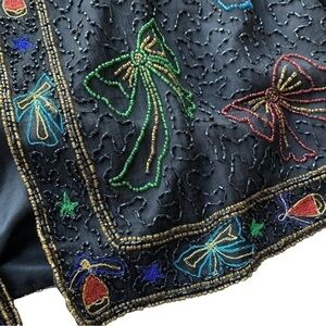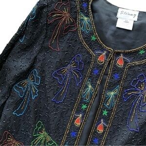 Vtg Stenay Silk Beaded Embroidered Bows Bells Cropped Formal Jacket Black Size M