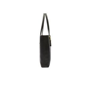 Introducing the Women's Evie Market Tote Bag by Consuela, crafted with a luxurious black leather exterior, handles, and trim. This Mexican-made tote includes a unique Evie leather bag tag secured with a hand-woven friendship bracelet, adding a personal touch. Inside, you'll find a full-length zipper compartment, a slide pocket, and a convenient hook-clip lanyard for keys. With dimensions of 14” (W at the base), 17” (W at the top) x 15 ¼” (H) x 3 ½” (D) and an 11 ¼” drop, this bag offers both style and practicality for your everyday needs.