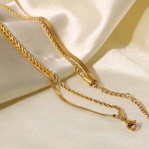 18k Gold Snake Chain & Rope Chain Layered Necklace Minimalist Layer Necklace