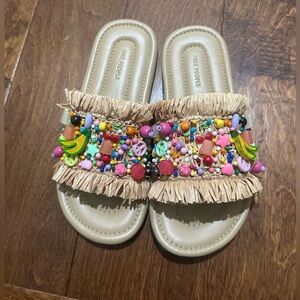 Free People Shipwrecked Multicolor Beaded Raffia Slide Sandals