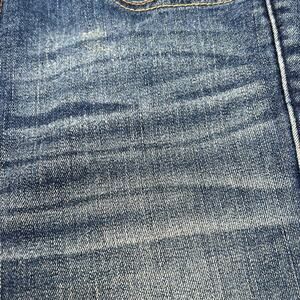Style: High Waisted Raw Edge Cuffed 5 Pocket Back Pocket Stitching Zip Button Closure Whiskering Belt Loops Stretchy Fabric