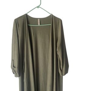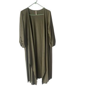Gilli Size Large Green Faux Suede Open Front Duster Long Cardigan Top