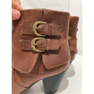 BOC BOOTS Concepts Traipse Brown Leather Ankle Boots, Size 7/38 Cuff Buckle SHO