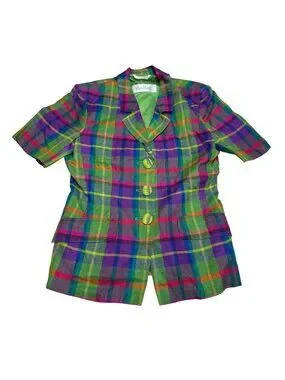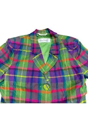 Vintage Max Mara Women's 100% Linen SS Multicolor Plaid Button Jacket, Size M