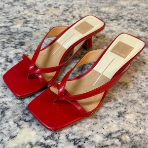 Dolce Vita Red Strappy Square-Toe Kitten Heels